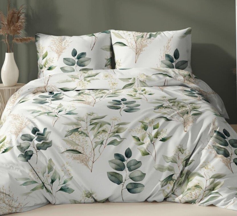 Saténovým povlečením Eukalyptus 140x200 70x90 cm